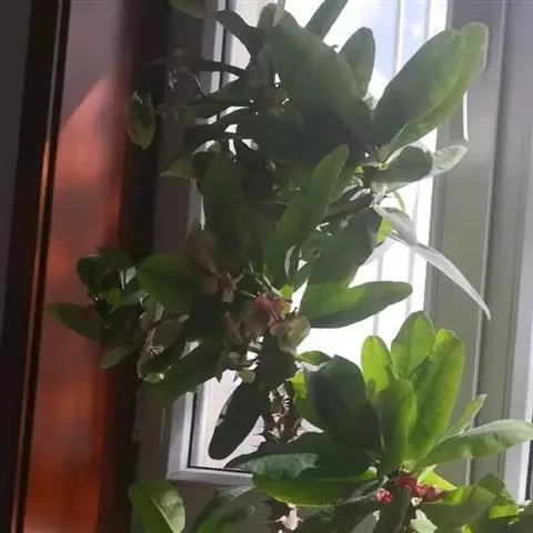 虎刺梅:别称铁海棠,是蔓生灌木植物。茎多分枝,长60-100厘米,直径5-10毫米,具纵棱,密生硬…