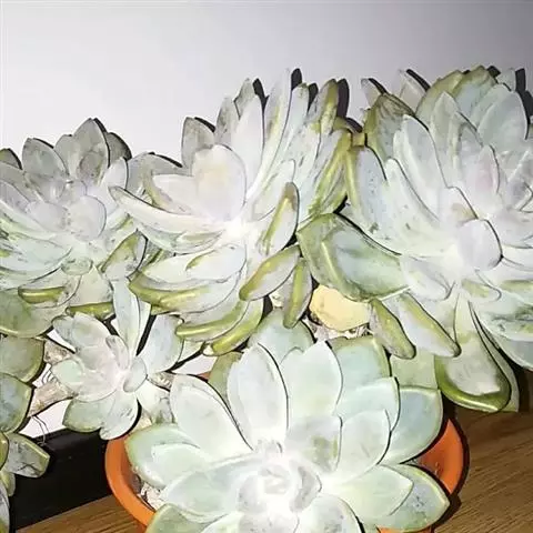 蓝石莲是景天科、拟石莲花属的多肉植物。茎部粗壮,成熟植株茎部木质化。叶片莲座型密集排列,株径不会很大,…