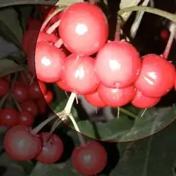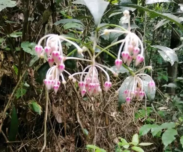 亚伞形花序,着生于侧生特殊花枝顶端,花枝长5-10厘米,通常无叶,长13-18厘米者,则中部以上具叶或仅近顶端有2-3片叶;花梗长1-1.5厘米,被微柔毛;花长4-5毫米,花萼仅基部连合,萼片长圆状卵形或披针形,顶端急尖或狭圆形,长1.5毫米,多少具腺点,无毛;花瓣白色或粉红色,卵形,长4-5毫米,顶端急尖,外面无毛,里面多少被细微柔毛,具腺点;雄蕊较花瓣略短,花药狭长圆状披针形,背部无腺点或有;雌蕊与花瓣等长或略长,子房卵珠形,无毛;胚珠5枚,1轮。果球形,直径5-6毫米,鲜红色,具腺点。花期5-6月,果期10-12月,有时植株上部开花,下部果熟。