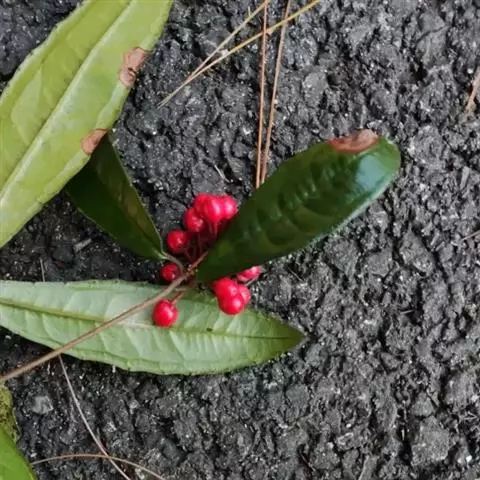 矮紫金牛是报春花科、紫金牛属灌木,株高1-2米。叶片革质,倒卵形或椭圆状倒卵形,少数倒披针形,…