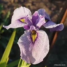 双色野鸢尾为多年生草本植物,叶子呈剑状淡绿色。…