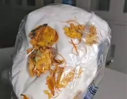 第二步:在炒锅中倒入花生油,将油烧至六成热,把鱼头下到锅里,炸至鱼头成金黄色,熟透,用笊篱捞出控净油,放入盘中待用。