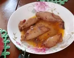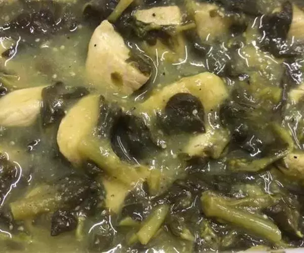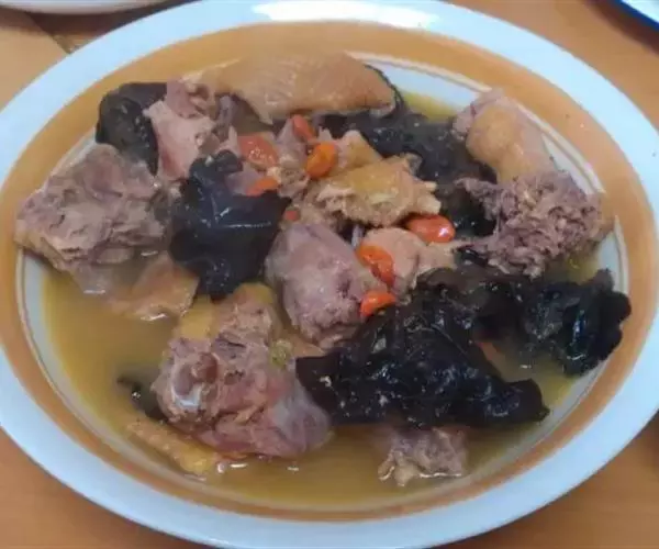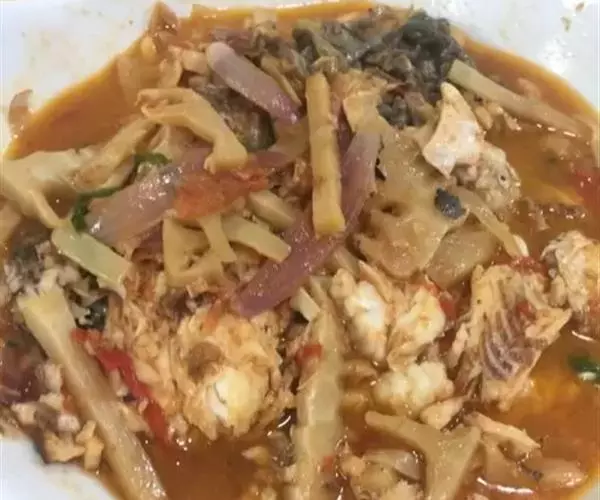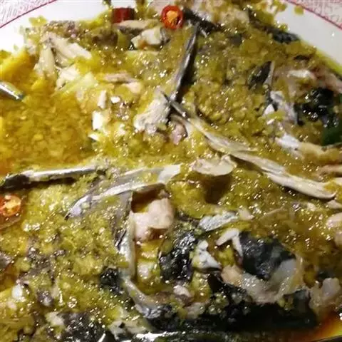 鱼头咸鲜微辣,嫩而香味浓郁,手工烙饼酥脆,蘸汤后松软可口。 此菜酱香浓郁,配带面饼,用汤汁泡食,一菜两吃。