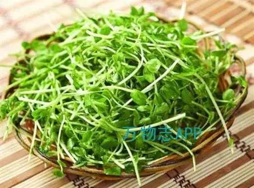 豌豆苗:蔬菜的一种。豌豆的嫩茎叶, 也是苗类蔬菜的一种,又被称为“豌豆尖”“龙须菜”,“龙须苗”.是以蔬菜豌豆的幼嫩茎叶、嫩梢作为食用的一种绿叶菜。在南方特别是江南地区最受欢迎,扬州人在岁首的餐桌上必摆上一盘豌豆苗,以表岁岁平安之意。
