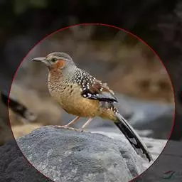 大噪鹛:中型鸟类,体长32-36厘米。额至头顶黑褐色,背栗褐色满杂以白色斑点,…