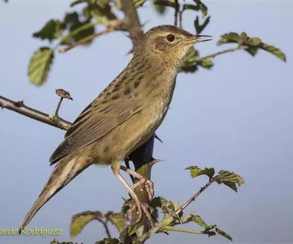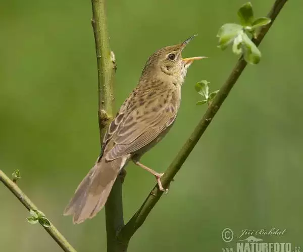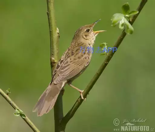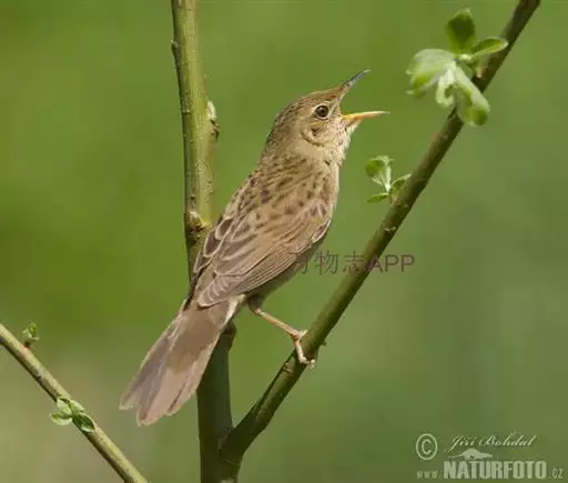 黑斑蝗莺(学名:Locustella naevia):体重13.5-14.5克,体长130-140厘米。外型极似小蝗莺,但上体橄榄褐色略浅,头顶及背部密布的暗色斑纹较不显著;眼先及眼后橄榄褐色,眼纹细而明显;飞羽和尾羽褐色,尾羽先端无白斑,外翈缘褐色。下体皮黄白色或淡黄色;颏、喉、腹中央白色;胸沾皮黄褐色,无斑纹;尾下覆羽褐色,中央较暗形成羽干纹。