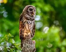 栗鸮:是鸟纲、草鸮科的猫头鹰。体长约29厘米,体重311-360克。是一种中等体型的红褐色鸮。…