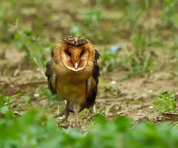 草鸮(学名:Tyto longimembris)是中等体型的鸮类,体长35厘米,夜行猛禽。面庞心形。似仓鸮,但脸及胸部的皮黄色色彩甚深,上体深褐。喙坚强而钩曲。嘴基蜡膜为硬须掩盖。翅的外形不一,第五枚次级飞羽缺。尾短圆,尾羽12枚,有时仅10枚。脚强健有力,常全部被羽,第四趾能向后反转,以利攀缘。爪大而锐。尾脂腺裸出。无副羽,间或留存。耳孔周缘具耳羽,有助于夜间分辨声响与夜间定位。营巢于树洞或岩隙中。雏鸟晚成性。