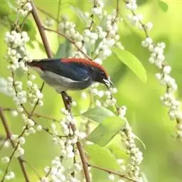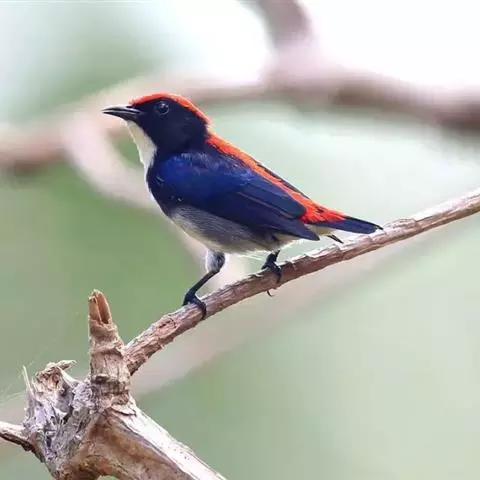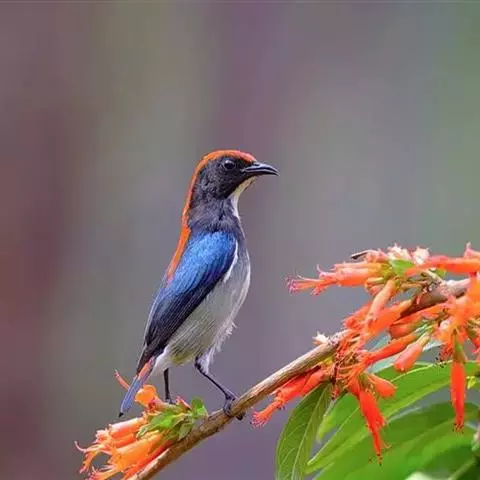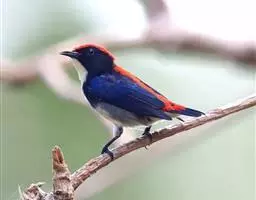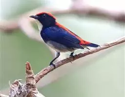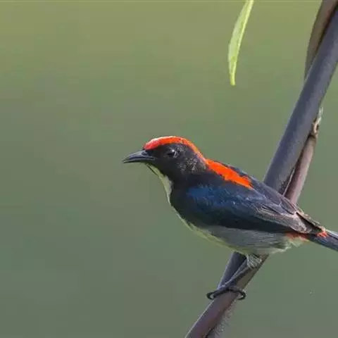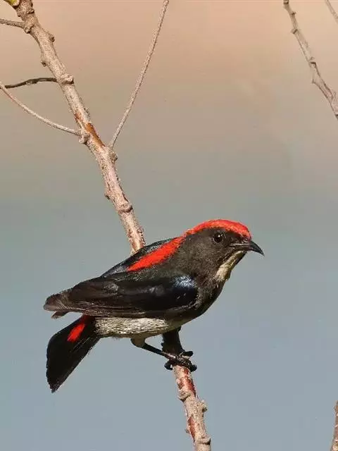 朱背啄花鸟:体重6-8克,体长81-97毫米。是一种小型的黑色及红色啄花鸟。雄鸟顶冠、背及腰猩红色,…