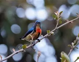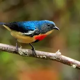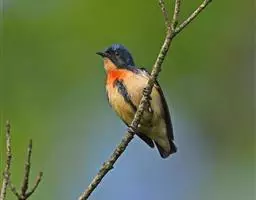 红胸啄花鸟:体重5-10克,体长60-92毫米。体形纤小。雄鸟上体呈辉亮的金属绿色;下体棕黄,…