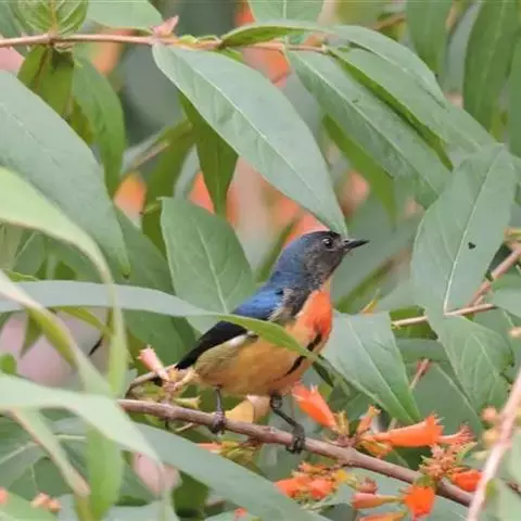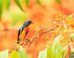 黄腹啄花鸟:体重11-16克,体长104-117毫米。是一种体型大,下腹部为艳黄色的啄花鸟,…