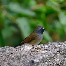 赭红尾鸲:小型鸟类,体长13-16厘米。雄鸟前额、头侧、颈侧、颏至胸概黑色,头顶和背灰色或黑色,…