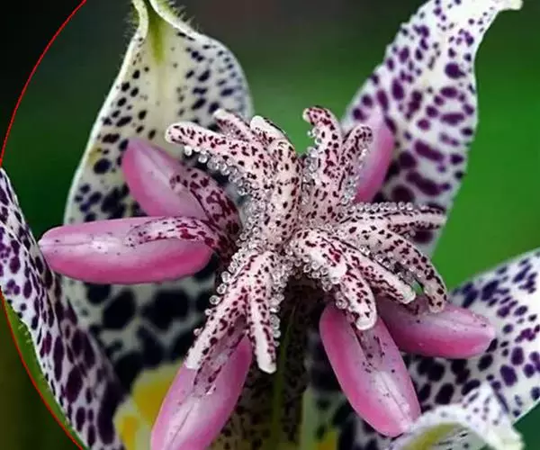 植株高可达1米。茎上部疏生或密生短的糙毛。叶卵状椭圆形、矩圆形至矩圆状披针形,长(6-)8-16(-19)厘米,宽(4-)6-9(-10)厘米,先端渐尖或急尖,两面疏生短糙伏毛,基部心形抱茎或圆形而近无柄,边缘具短糙毛。二歧聚伞花序顶生或生于上部叶腋,花序轴和花梗生有淡褐色短糙毛,并间生有细腺毛;花梗长1.4-2.5(-3)厘米;苞片很小;花疏散;花被片绿白色或白色,内面具多数紫红色斑点,卵状椭圆形至披针形,长约1.5-2厘米,开放后自中下部向下反折;外轮3片较内轮为宽,在基部向下延伸而呈囊状;雄蕊约等长于花被片,花丝中上部向外弯垂,具紫色斑点;柱头稍微高出雄蕊或有时近等高,3裂;裂片长1-1.5厘米,每裂片上端又二深裂,小裂片长约5毫米,密生腺毛。蒴果直立,长约2-3厘米。花果期6-10月。