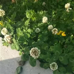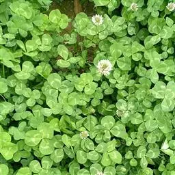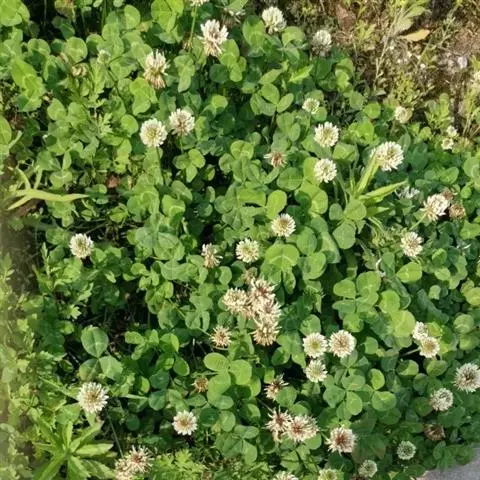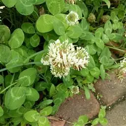 白车轴草,豆科车轴草属的多年生草本植物,茎贴地匍匐;叶柄直立,小叶心形,边缘具细齿,叶脉明显,…