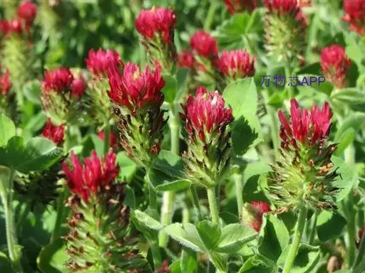 绛车轴草是豆科车轴草属的一年生草本植物。绛车轴草茎直立或上升,粗壮,被长柔毛,具纵棱;掌状三出复叶,…