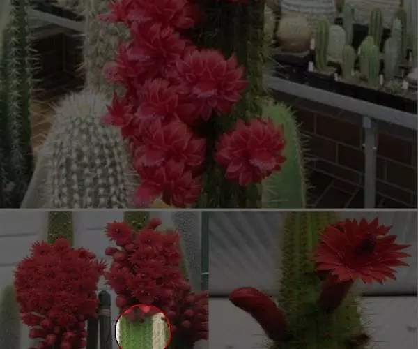 花序圆筒状顶生,花期继续伸长,长3-5厘米,宽1-1.5厘米;总花梗比叶长,长2.5-7厘米,粗壮;无总苞;具花50-80(-120)朵,甚密集;花长10-15毫米;几无花梗;萼筒形,密被长硬毛,具脉纹10条,萼齿狭三角状锥形,近等长,萼筒较短,萼喉具一多毛的加厚环,果期缢缩闭合;花冠深红色、朱红色至橙色,旗瓣狭椭圆形,锐尖头,明显比翼瓣和龙骨瓣长;子房阔卵形,花柱细长,胚珠1粒。荚果卵形;有1粒褐色种子。花果期5-7月。