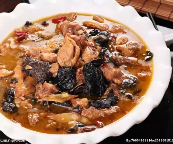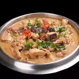 小鸡炖蘑菇是一道东北炖菜。通常是用干蘑菇、鸡肉和粉条一同炖制而成。榛蘑可以衬托出鸡肉的鲜香,粉条滑…