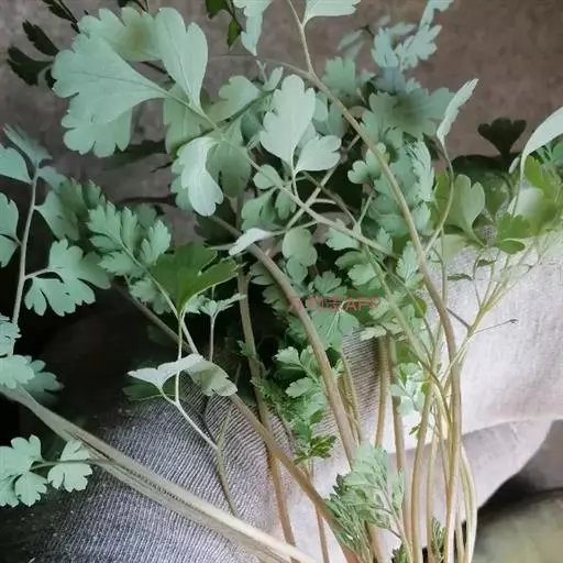基生叶具长柄,叶片近三角形,长5-9厘米,上面绿色,下面苍白色,1-2回羽状全裂,一羽片2-3对,具短柄,二回羽片近无柄,倒卵圆形,羽状分裂,裂片狭卵圆形,顶端钝,近具短尖。茎生叶与基生叶同形。