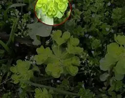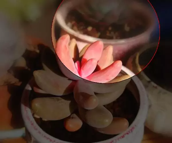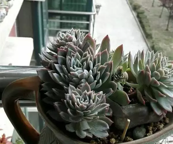 拍摄者:Emmanuelle Aubé 叶呈卵圆披针状,叶端收尖稍向内凹,被白粉,一般浅灰绿或浅灰蓝;光照充足、温差大时变为较鲜艳的紫粉色(通常在深秋或冬季时颜色最为鲜艳)。叶片较多,排列呈致密的莲座状,直径可达20。多年生植株密集群生,高10-12厘米,每个莲座直径可达15-20厘米。花期为春季,穗状花序,钟形花,先端五裂;花瓣内侧黄色,外侧粉色。