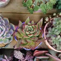 紫罗兰女王是景天科拟石莲花属的多年生肉质草本植物,中小型品种。叶片呈莲座形密集排列,在强光下会变成梦幻的紫粉色,且叶缘有透明的冰边。亲本之一是月影,另一亲本未知。 无明显休眠期,生长与同属其它植物相比较为迅速。 最早在美国加利福尼亚州圣巴巴拉市园艺师Edward Orpet培育,