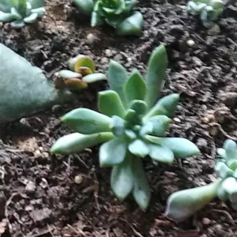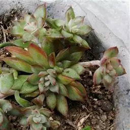叶插:生长期把生长良好肥厚的叶片掰下,平放在潮湿的沙土上,叶面朝上,叶背朝下,不必覆土,放置阴凉通风处,10天左右从叶片基部可长出小叶及须根,待长出根须后进行浇水,促其快速生长,将根系埋入土中。以后让它多晒太阳,适当浇水、施肥,渐渐地便会长成一棵茁壮的新株。 插穗:可用单叶、蘖枝或顶枝,剪取的插穗长短不限,但剪口要干燥后,去掉下部叶片,再插入沙床。插后一般15天左右生根。插壤不能太湿,否则剪口易发黄腐烂,根长2-3厘米时上盆。也可用叶片扦插。 分株:最好在春天进行。常用扦插繁殖。室内扦插,四季均可进行,以8-10月为更好,生根快,成活率高。插穗可用单叶、蘖枝或顶枝,剪取的插穗长短不限,但剪口要干燥后,再插入沙床。插后一般15天左右生根。