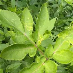 明日叶,伞形科当归属多年生大草本。茎叶内含黄色液汁,茎直立,多分枝;基生叶丛生,具长柄,基部扩大抱茎,…