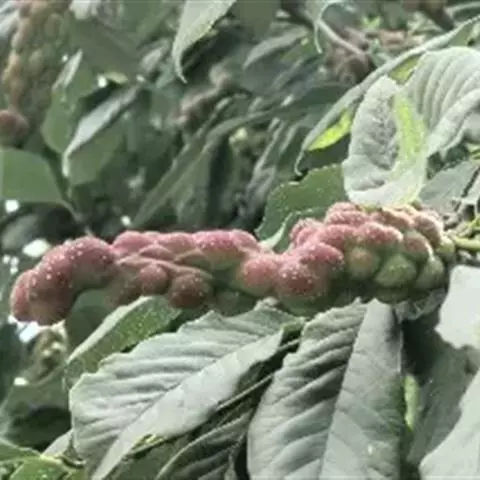 产于浙江。生于海拔700-1 000米的林中。落叶乔木,高达12米,树皮灰色或灰白色;芽被灰白色紧…