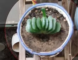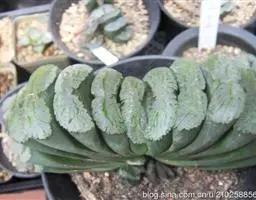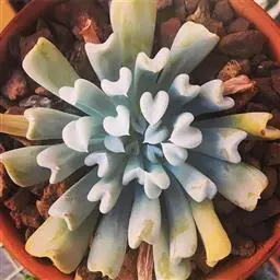 蓝黛莲是一种景天科厚叶草属植物。叶片呈略扁的圆柱形,排列成莲座状;颜色为灰绿色,…