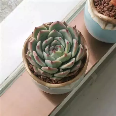吉娃莲,景天科拟石莲花属,别名:吉娃娃,吉娃莲,植株小型,无茎的莲座叶盘非常紧凑。卵形叶较厚,带小尖,…