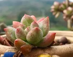 小红衣是景天科、拟石莲花属的一种多肉植物。叶片匙形,扁平细长,叶表具白粉,有明显的半透明边缘,…