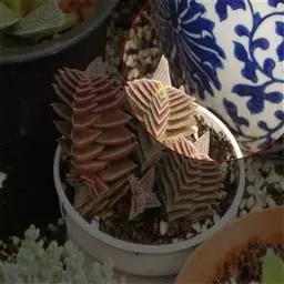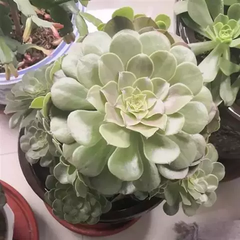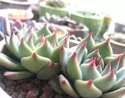 大和锦是景天科拟石莲花属的多肉植物。肉质叶排成紧密的莲座状,广卵形至散三角卵形,背面突起呈龙骨状,…