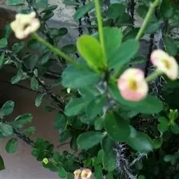 虎刺梅:别称铁海棠,是蔓生灌木植物。茎多分枝,长60-100厘米,直径5-10毫米,具纵棱,密生硬…