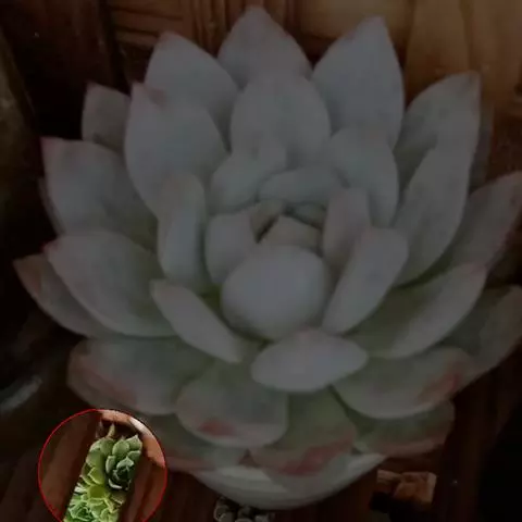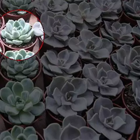 紫珍珠是景天科石莲花属的多年生肉质草本植物。植株中小型;叶片肉质,匙形,呈莲座状紧密排列;叶片粉紫色,…