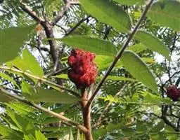 火炬树是漆树科盐麸木属落叶灌木或小乔木;株高,树形不整齐;小枝粗壮,红褐色,密生绒毛;叶轴无翅,…
