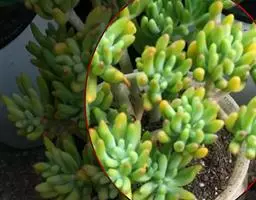 灯美人是景天科的园艺品种,多肉植物。叶片近柱状,丛生,在日照时间长、温差大的环境下会呈现橙粉色。