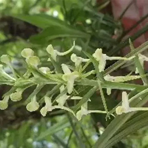 莎草兰是兰科兰属的附生草本植物。假鳞茎近卵形,稍有香气,奶油黄或淡黄绿色,有时略有淡粉红色晕,…