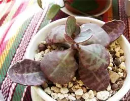 江户紫,景天科伽蓝菜属草本植物,是多年生草本花卉。花白色,但栽培中很少能见到花,常作观叶植物栽培。…