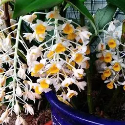 球花石斛,是兰科石斛属的多年生附生草本。茎直立或斜立,圆柱形,粗壮,基部收狭为细圆柱形,不分枝,…