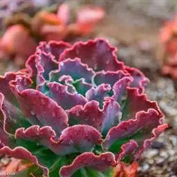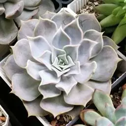 高砂之翁是景天科,拟石莲花属的多肉植物。特征是其边缘呈大波浪卷形的宽大叶片,…
