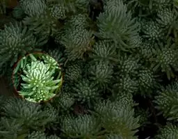 薄雪万年草别名矶小松,景天科景天属多年生草本植物,其细小的蓝绿色棒状叶片环绕生长于茎端,…