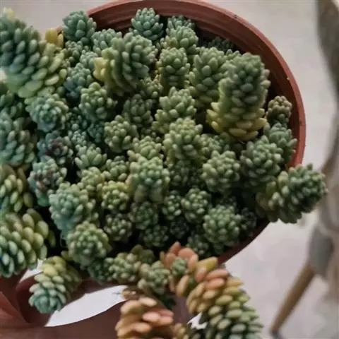 玉米石是景天科、景天属植物。多年生草本多浆植物。植株低矮丛生,多分枝。叶膨大成圆筒形、卵形或近小球形,…