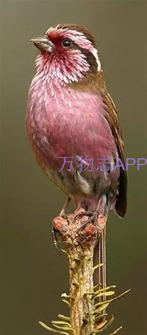 喜马拉雅白眉朱雀:小型鸟类,体长15-17厘米,体重24-35克。额基、眼先深红色,…