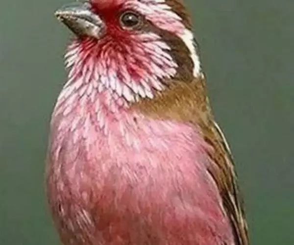 藏朱雀:全长约17-18厘米。雄鸟头部深红色具光辉,喉部暗红色具白色点斑;背部灰白色,各羽具玫瑰红…