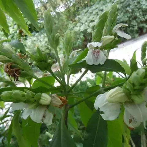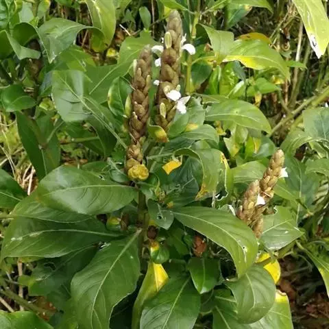 多年生草本,直立,高达2米。茎单一,圆柱形,节膨大。叶具2-6厘米的柄,卵形至矩圆状披针形,长16-26厘米,宽7.5-9.5厘米,膜质,顶端渐尖,基部急尖,向下变狭,侧脉每边8-9条,上面主脉下陷。穗状花序顶生或生于上部叶腋,单一或具1-2对分枝,长5-12厘米,每节具对生的单花,花轴4棱形,棱面中央具一列黄色微毛;花红色。苞片和小苞片鳞片状或三角状披针形,长约3毫米,比萼裂片短。花萼约长1.2厘米,被短柔毛缘毛,不等5齿裂,裂齿急尖。花冠白色有紫红色斑纹,冠管长约1.5厘米,基部以上突然弯曲,外有微毛,2唇形,上唇几圆,几比下唇短一倍,边缘反卷;下唇里面具2褶,不等3裂,冠檐裂片圆,开展;雄蕊2,内藏或极短地伸出,着生于冠管中部;花丝丝状,光滑,花药斜2室,下方一药室基部具距。子房光滑,花柱极少被微毛。蒴果倒披针形,长约0.5厘米,上部具种子4粒,下部实心似柄状,长约1.5厘米。种子扁圆,表面淡黄色,有疣状凸起。