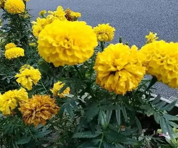 万寿菊是一种常见的园林绿化花卉,其花大、花期长,常用来点缀花坛、广场、布置花丛、花境和培植花篱。中、矮生品种适宜作花坛、花径、花丛材料,也可作盆栽;植株较高的品种可作为背景材料或切花。