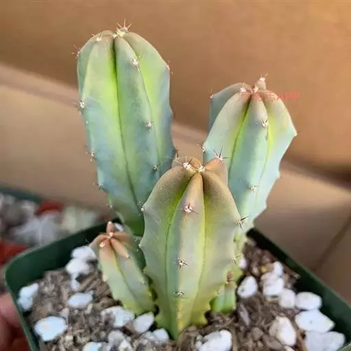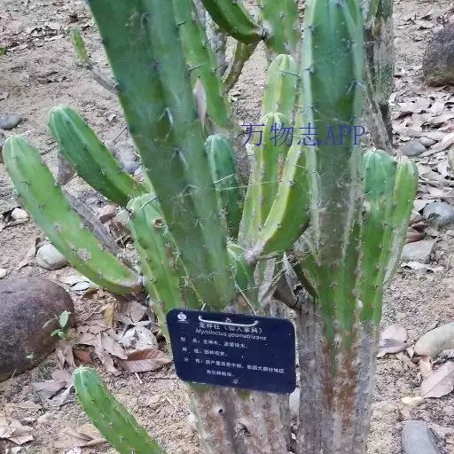 龙神木,又称蓝爱神木。原产墨西哥中部为肉质植物、也称多浆植物,植株呈多分枝的乔木状,在原产地可长到3~4米高,柱状肉质茎粗6~10厘米,具5~6棱,刺座生于棱缘,排列稀疏,周刺5枚,长约0.2厘米,初为红褐色,后为黑褐色;黑色中刺1枚,匕首形,长达7厘米,但栽培中幼株的中刺往往不发育。茎表皮光滑,蓝绿色,新长出的茎被有白粉。而老茎因风吹雨淋,白粉会逐渐脱落,使表皮呈蓝灰色。花朵直径2.5~3.5厘米,白色中稍带绿色,花期夏季,昼开夜闭,具芳香。浆果蓝色。
