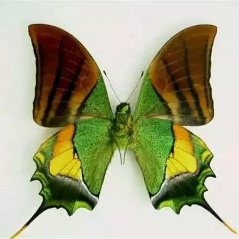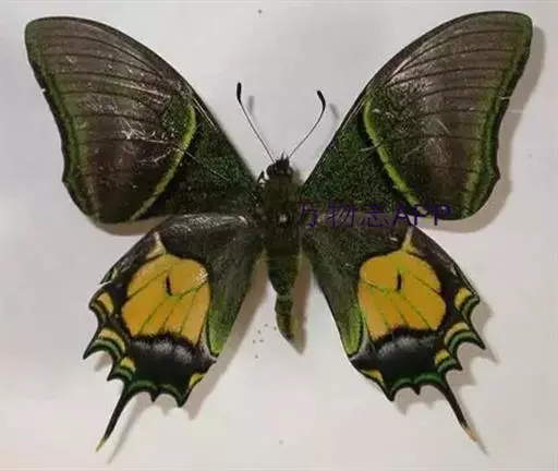 喙凤蝶身体、翅面大部分翠绿色,雌雄异型。雄蝶前翅基半部色深,以外侧黄绿色而内侧黑色的横纹分界,是观赏的佳品。