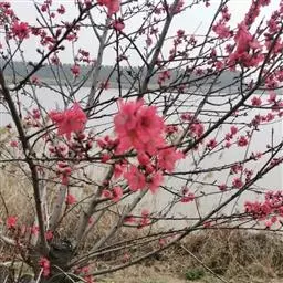 属于观赏桃花类的半重瓣及重瓣品种,统称为碧桃。华东地区碧桃花期是3月~4月,花朵丰腴,色彩鲜艳丰富,花型多。常见的品种有红花绿叶碧桃、红花红叶碧桃,白红双色洒金碧桃等多个变种。碧桃具有很高的观赏价值,在小区、公园、街道随处可见的美丽植物。