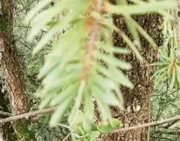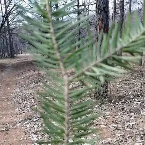 乔木,高达40米,胸径达1米;树皮灰色或深灰色,裂成 不规则的薄片固着于树干上,内皮淡红色;大枝斜上伸展,一年生枝淡褐黄色、淡灰黄色或淡褐色,叶枕之间的凹槽内有疏生短毛或无毛,二、三年生枝呈淡褐灰色或褐灰色; 冬芽圆球形或卵圆形,有树脂。树皮大多为白灰色,纵裂,呈鳞片状剥落;心、边材区别不明显,木材浅褐色或黄褐色带红色;纹理直,略均匀,结构中,有光泽;年轮明显,宽窄不均,木射线甚细;管胞内含有草酸钙,在横切面上呈白色小点,为显著特征之一。