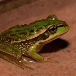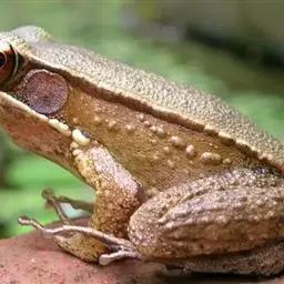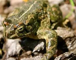 绿臭蛙,无尾目蛙科臭蛙属。雄蛙体长78~88mm,雌蛙体长93~131mm。头部扁平,头长略大于头宽,吻端钝圆,瞳孔横椭圆形,眼间距与上眼睑等宽;鼓膜小,约为眼径之半;犁骨齿两斜列。